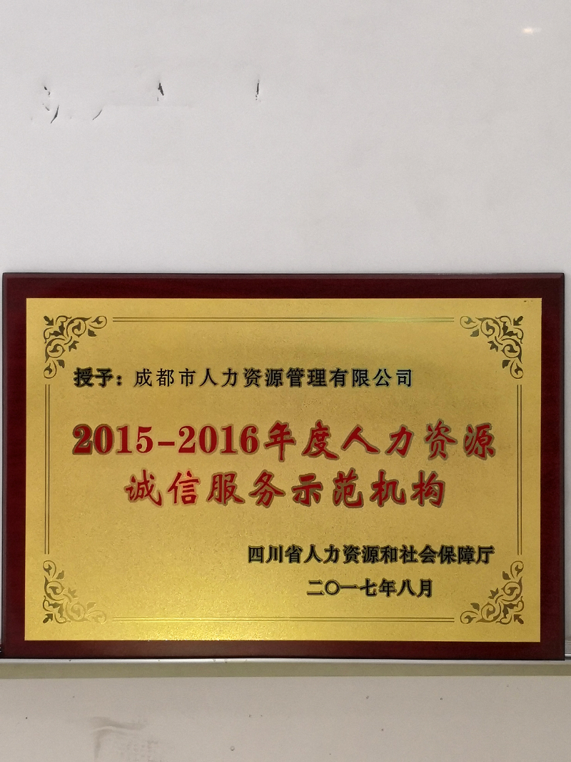 2015-2016年度人力資源誠信服務(wù)示范機(jī)構(gòu)