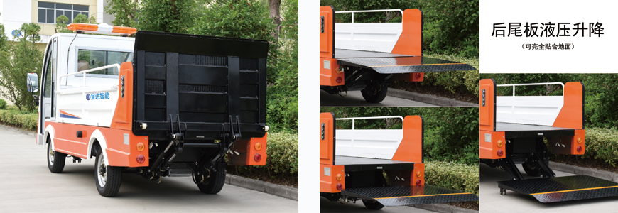 2.采用觀光車車頭,車廂地板采用鋼質(zhì)防滑板,可防止垃圾桶在運(yùn)輸與轉(zhuǎn)運(yùn)過(guò)程中打滑。